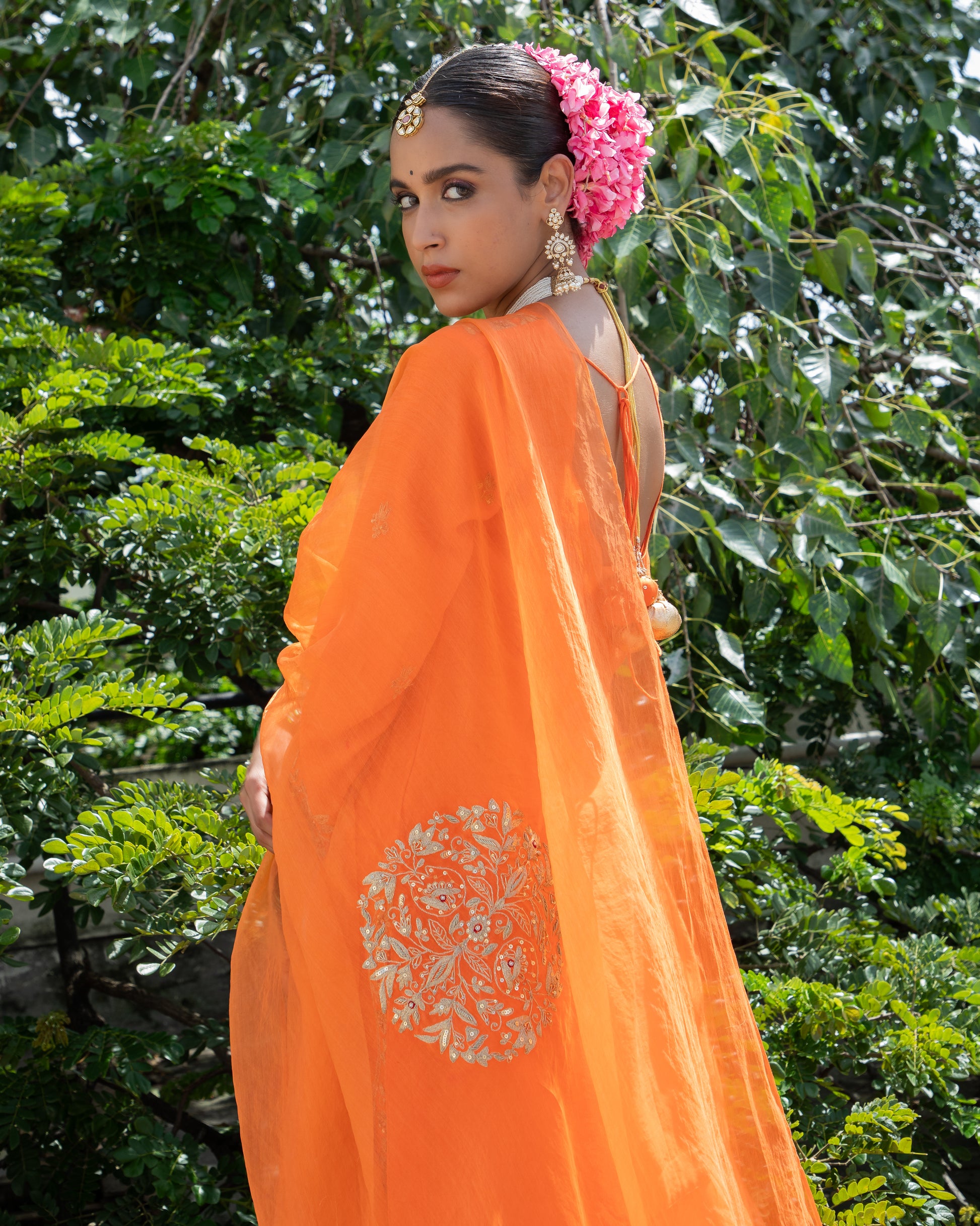 DESCRIPTION: Dupatta is in pure silk organza has hand zardozi and machine embroidery.