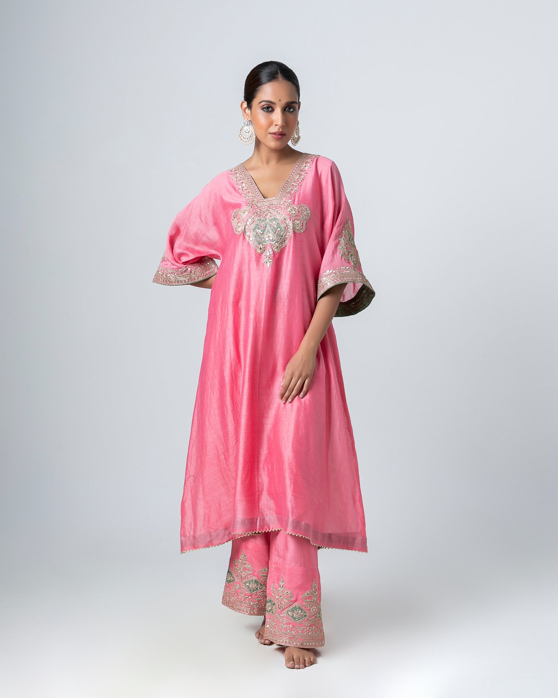 DESCRIPTION: Bottom is straight fit in cotton silk with hand zardozi and machine embroidery at the hem.